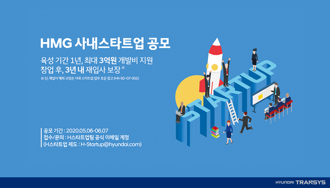*H스타트업이란? 현대차동차그룹의 사내 스타트업 육성 프로그램/ 육성 기간 1년, 최대 3억원 개발비 지원, 창업 후 3년 내 재입사 보장(단, 재입사 예외 규정은 사내 스타트업 업무 표준 참고)