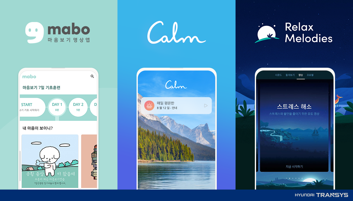 저는 개인적으로 머릿속은 복잡한데 몸은 죽어도 움직이기 싫을 때, 밖에 나와 있어 운동할 여건이 안될 때 주로 명상을 합니다. 예를 들면 회사에서 갑자기 업무가 몰리기 시작해서 스트레스 지수가 올라가고 있을 때 점심시간을 활용하여 명상을 하죠. 명상 앱의 도움을 받아 타이머를 5분으로 맞추고 조용한 자연의 소리가 나오도록 설정한 후 눈을 감고 몸과 마음을 편안하게 합니다. 머릿속에 온갖 생각들이 바삐 스쳐 가는데, 그 생각들에 대해 더 생각하는 게 아니라 마치 버스정류장에 앉아 지나가는 차들을 보듯이 스쳐 가는 생각들을 바라봅니다. 내가 어떤 부분에서 스트레스를 받고 있는지 한 발 뒤에서 바라보게 되면서 생각들이 정리됩니다. 받는 스트레스를 명상으로 완화해보세요.
