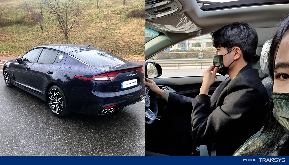박건영 신입사원: 인터넷에서 신입사원이 그랜저 타고 다닌다고 욕먹었다는 글을 보고, 저도 솔직히 처음에는 조금 걱정을 하기도 했습니다. 하지만 현대트랜시스 회사 조직문화는 전혀 그렇지 않아 걱정할 필요가 없었습니다. 저의 상사 분들도 업무를 할 때 평소에 제 의견을 많이 반영해 주시고, 출퇴근도 형식적인 자율화가 아니라 완전 자율화되어 원하는 시간에 출근하고 퇴근하는 환경이죠. 이런 자유롭고 수평적인 환경에서 근무를 하다 보니 좋은 차를 타고 다니는 것에 대한 눈치가 부담이 없어졌어요. 사실 저도 준중형SUV와 스팅어 사이에서 고민을 많이 했었는데 오히려 저희 팀원분들께서 젊을 때 스팅어를 타보는 거라며 용기를 북돋아주셨습니다.