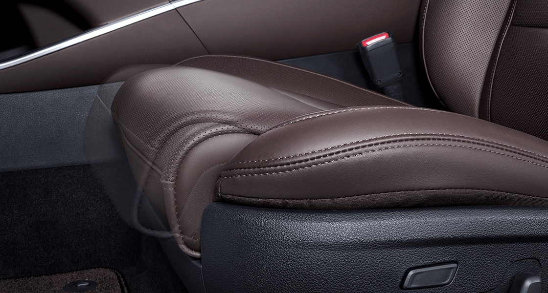 운전석 전동식 쿠션 익스텐션 버튼은 운전자가 자신의 체형에 맞춰 시트 쿠션의 길이를 연장해 다리의 더 넓은 영역을 쿠션이 지지할 수 있게 도와줍니다. 이는 운전 시의 피로감을 덜어주고 편안한 자세로 운전할 수 있게 해주죠. 제네시스 G80, G70, 현대차의 그랜저, 기아의 K9, 스팅어, K7 등에 지원되고 있습니다.