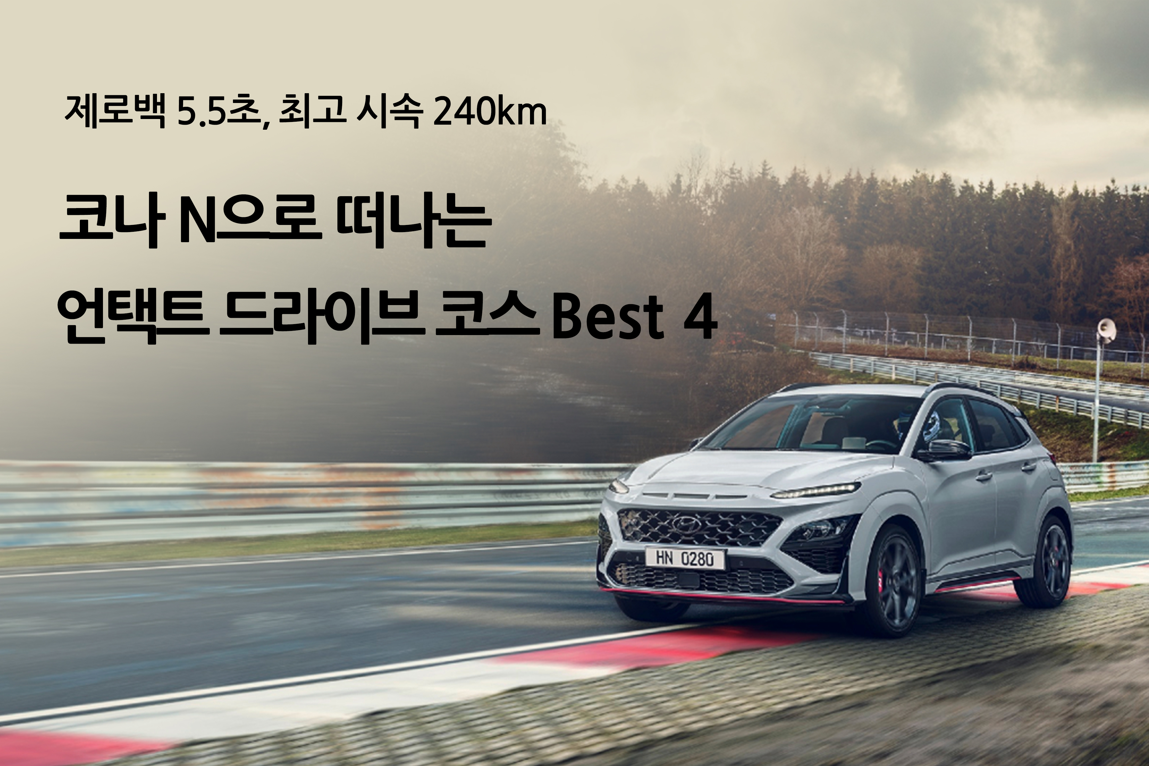 오늘은 현대자동차의 첫 번째 고성능 SUV 모델인 코나 N의 역동적인 주행 성능을 느낄 수 있는 국내 이색 드라이브 코스에 대해 알아봤는데요. 펀 드라이빙을 즐기고 싶다면 지금 바로 시동을 걸어볼까요?