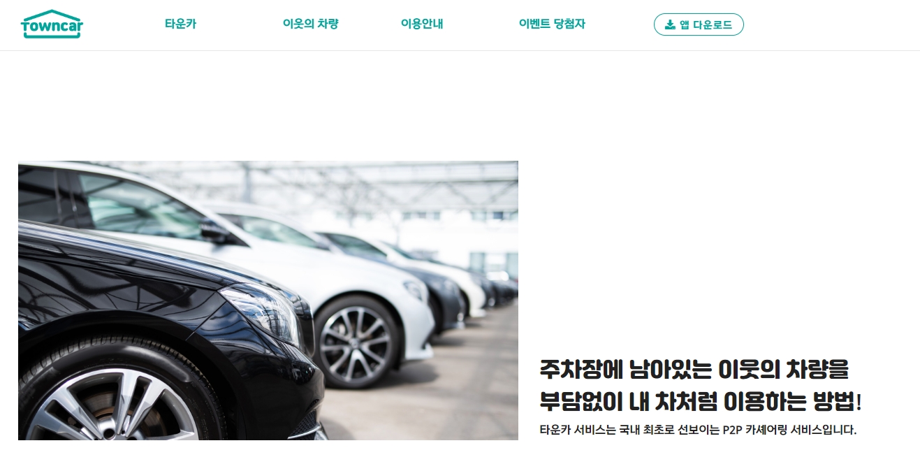 이후 국내 유일 이웃 기반 차량 공유 서비스 ‘타운카’가 등장했습니다. 타운카는 대중교통이 잘 되어 있지 않은 신도시 아파트와 오피스텔 단지 내 입주민을 대상으로 하는 자동차 공유 서비스인데요, 자동차 대여를 희망하는 입주민이 자동차대여사업자로 등록하면 자신이 소유하고 있는 유휴차량을 운행이 필요한 다른 입주민에게 단기간 대여해주고 일정의 대여비를 받습니다. 대여자는 저렴하고 편리하게 차량을 렌트할 수 있고, 차 주인은 사용하지 않는 차량을 빌려주면서 렌트비를 받아 수익을 얻게 되는 구조로 운영됩니다.