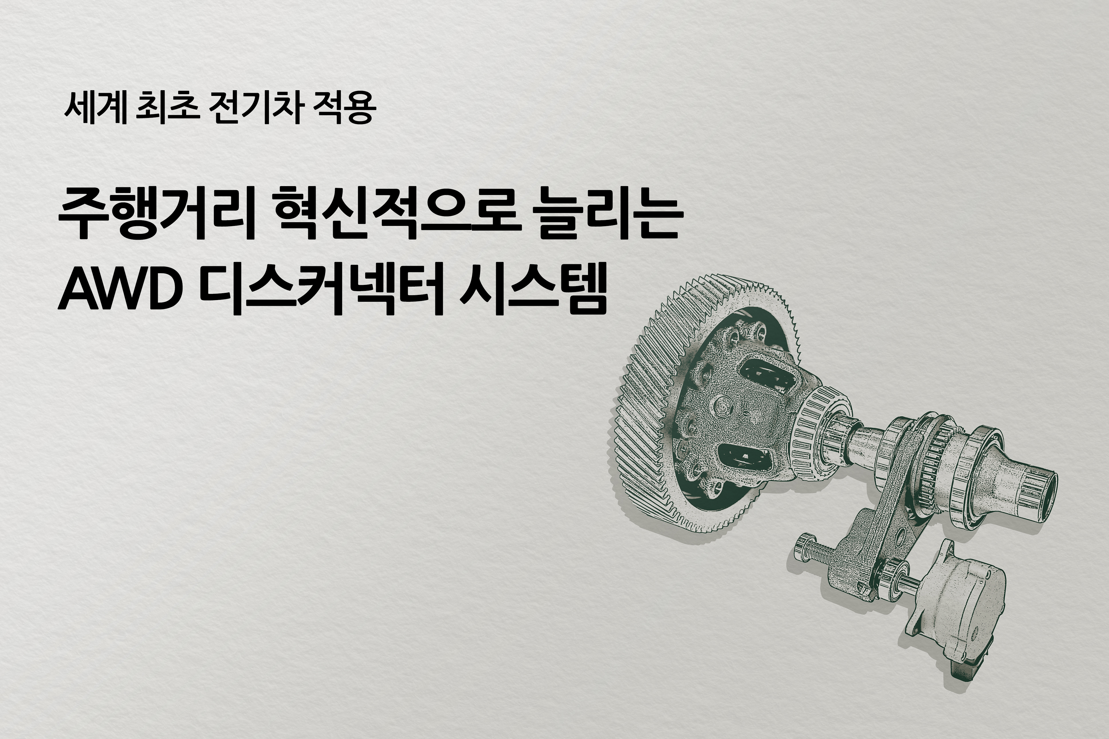 현대트랜시스는 전기차 감속기에 장착하는 ‘전기차 전용 AWD 디스커넥터 시스템’ 개발에 성공했으며, 아이오닉 5에 이 기술을 처음으로 적용했습니다.