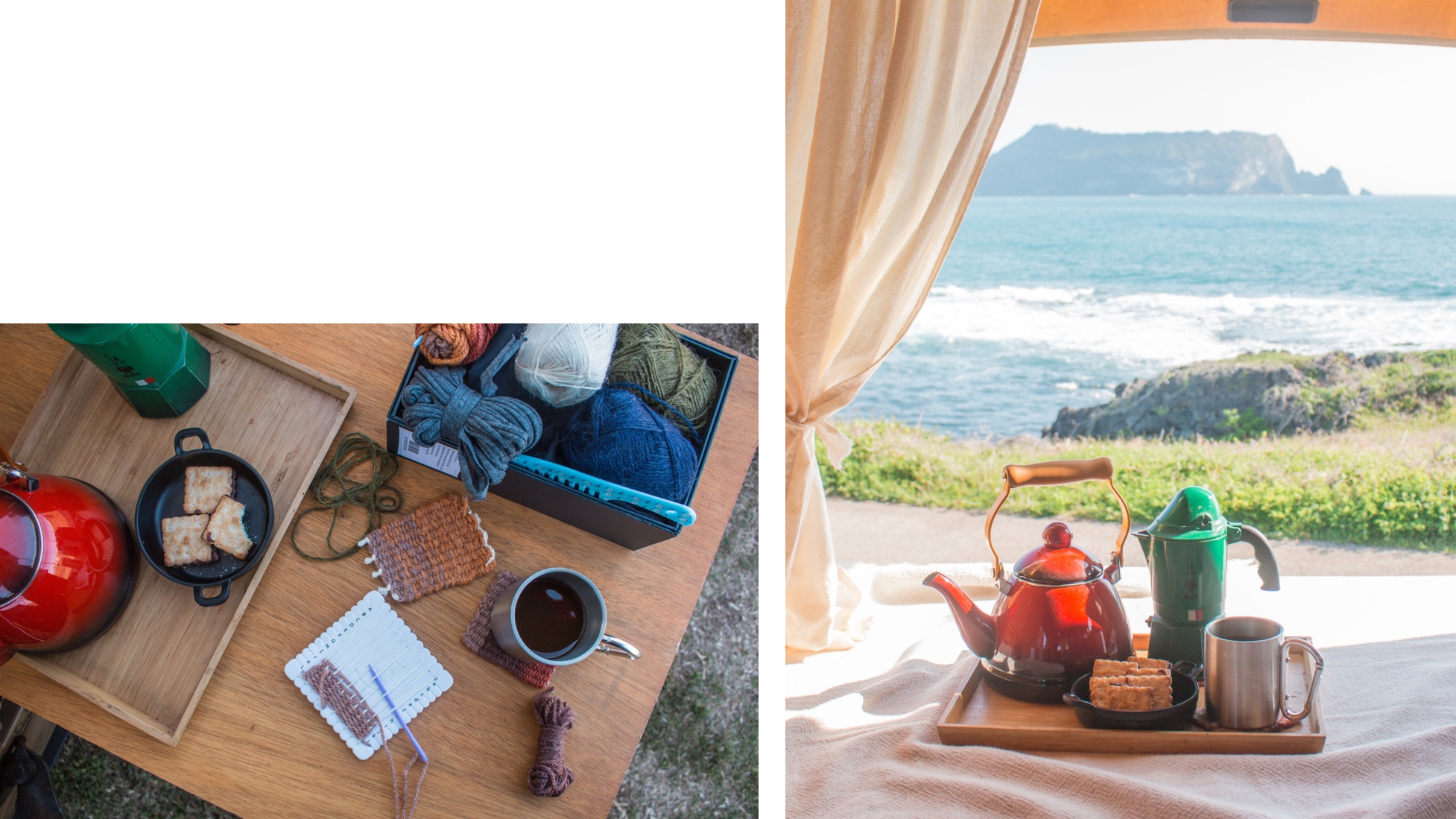노지의 장점이자 단점은, 해 질 녘이면 주변이 눈에 띄게 어두워진다는 것입니다. 서둘러 조명을 켜고 저녁 식사를 준비한 뒤, 나만의 공간에서 제주의 밤을 즐겨봅니다.