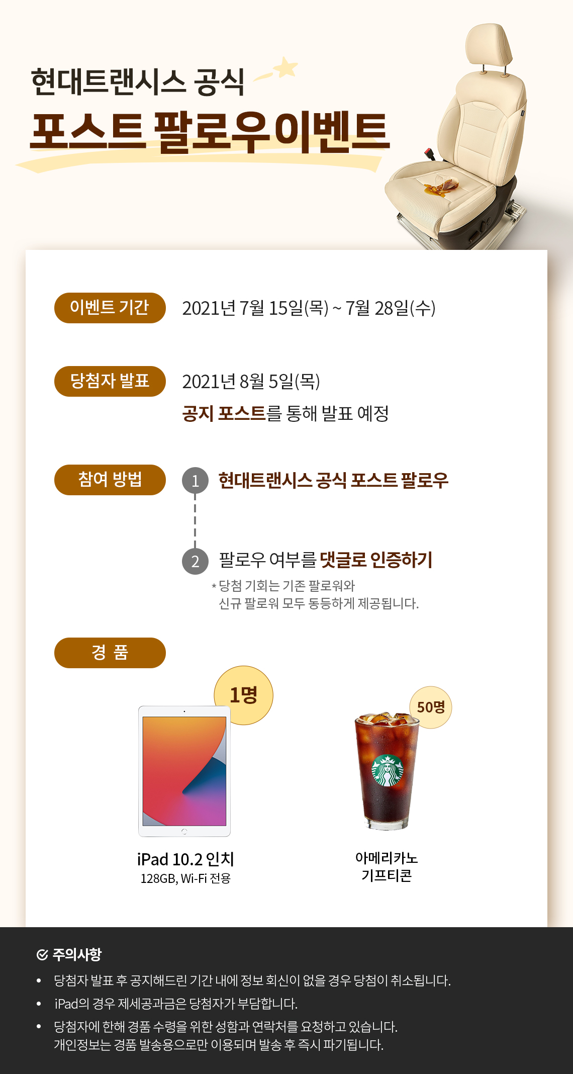 2. 이벤트 당첨자는 2021년 8월 5일(목) 공지 포스트를 통해 발표 예정