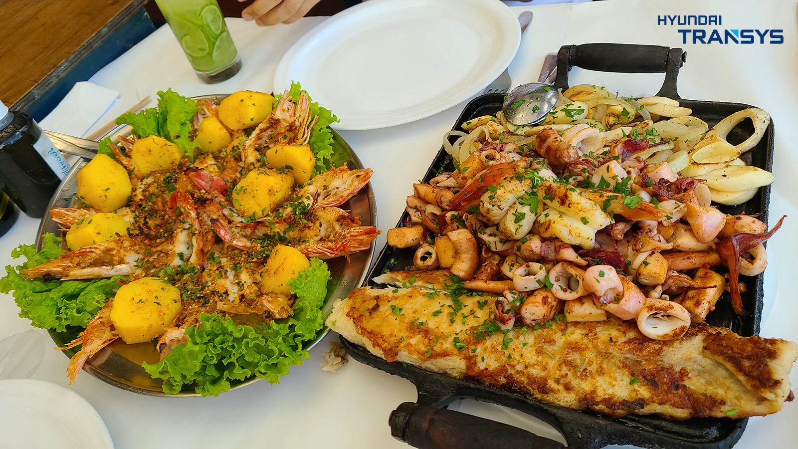 제가 거주하고 있는 피라시카바는 내륙지역이라 해산물을 접하기가 어렵습니다. 상대적으로 바닷가와 접하고 있는 구아루자 지역은 가격도 저렴하고 해산물도 신선했습니다. 새우 요리를 보니 주문하길 잘했다는 생각이 드네요. 생각보다 제염을 많이 해서 물을 많이 마시긴 했지만 해산물을 보니 너무 반가워서 허겁지겁 다 해치웠답니다.