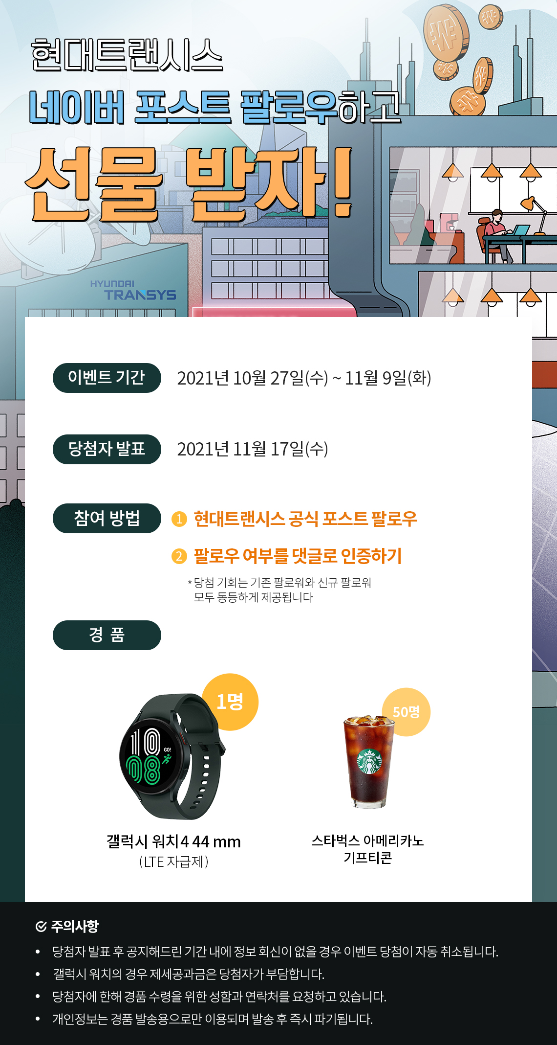 현대트랜시스 공식 네이버 포스트, 지금 팔로우하시고 푸짐한 선물도 받아가세요!