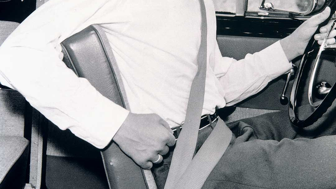 그렇다면 자동차에는 언제 처음 안전벨트가 장착되었을까요? 1936년 스웨덴의 볼보 직원이 아우토반을 달릴 때 안전을 위해 장착한 2점식 안전벨트입니다. 2점식 안전벨트는 자체에 안전벨트의 두 끝을 붙여 허리를 조여 매는 방식인데요. 이후 1959년 볼보의 엔지니어 닐스 보린이 현재와 유사한 3점식 안전벨트를 발명했고, 볼보 1959년형 122 차량에 적용했습니다.
