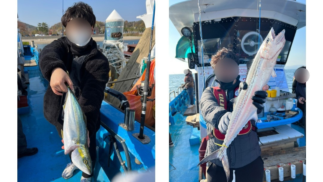 지금까지 경험했던 낚시는 던져 놓고 기다리는 방식이었는데요. 삼치, 참치, 방어 낚시는 멀리 던지고 열심히 릴을 돌려 마치 물고기가 헤엄치는 듯한 액션을 취해야 하기 때문에 모두가 열심히 던지고 감기를 반복했습니다.
