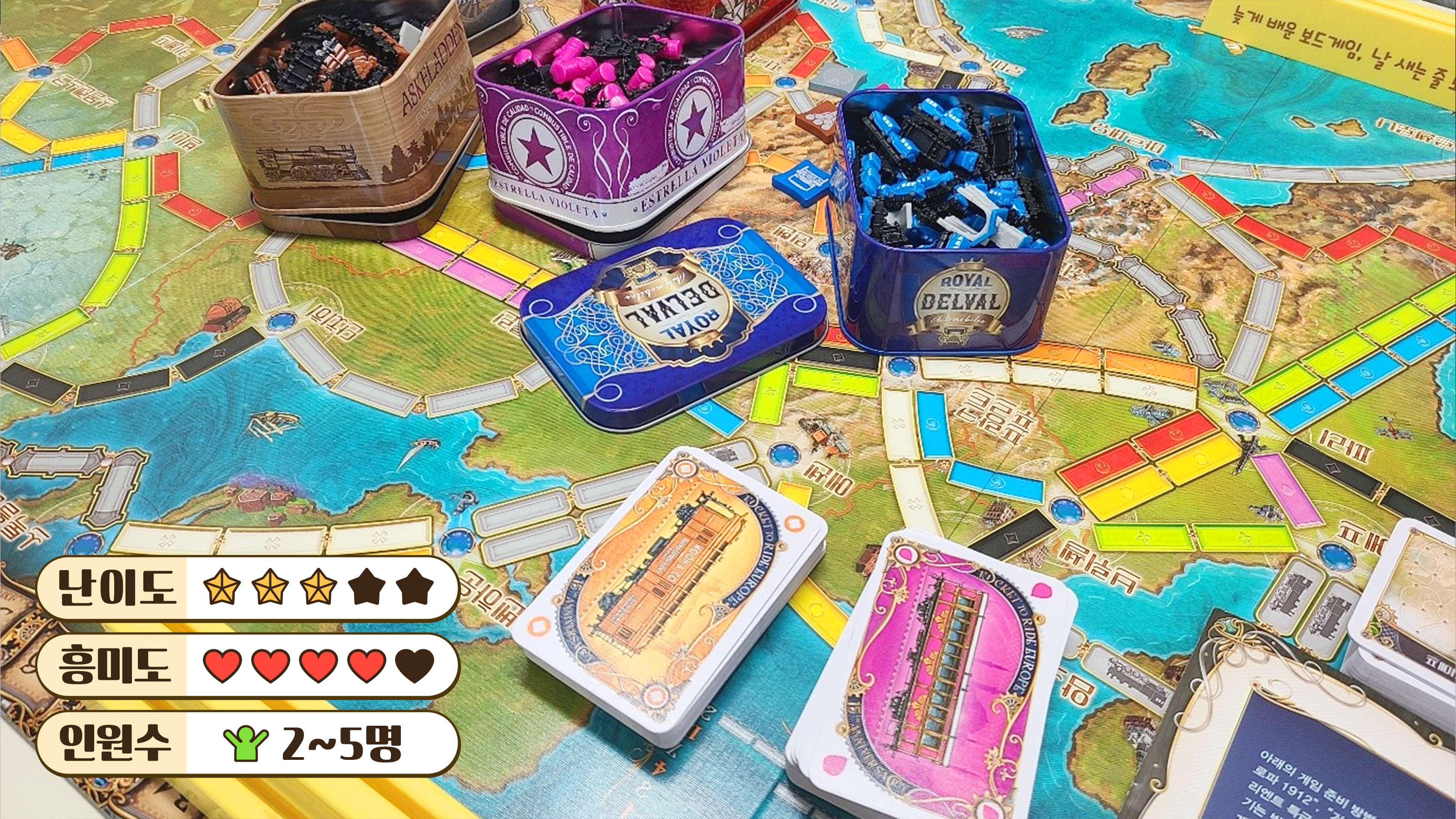 티켓 투 라이더는 전세계 보드 게이머들의 절대적인 지지를 받고 있는 클래식 게임입니다. 각 대륙의 도시를 연결하는 기차를 방법으로 간단한 규칙은 물론 눈과 손이 즐거운 멋진 구성물이 특징이죠.