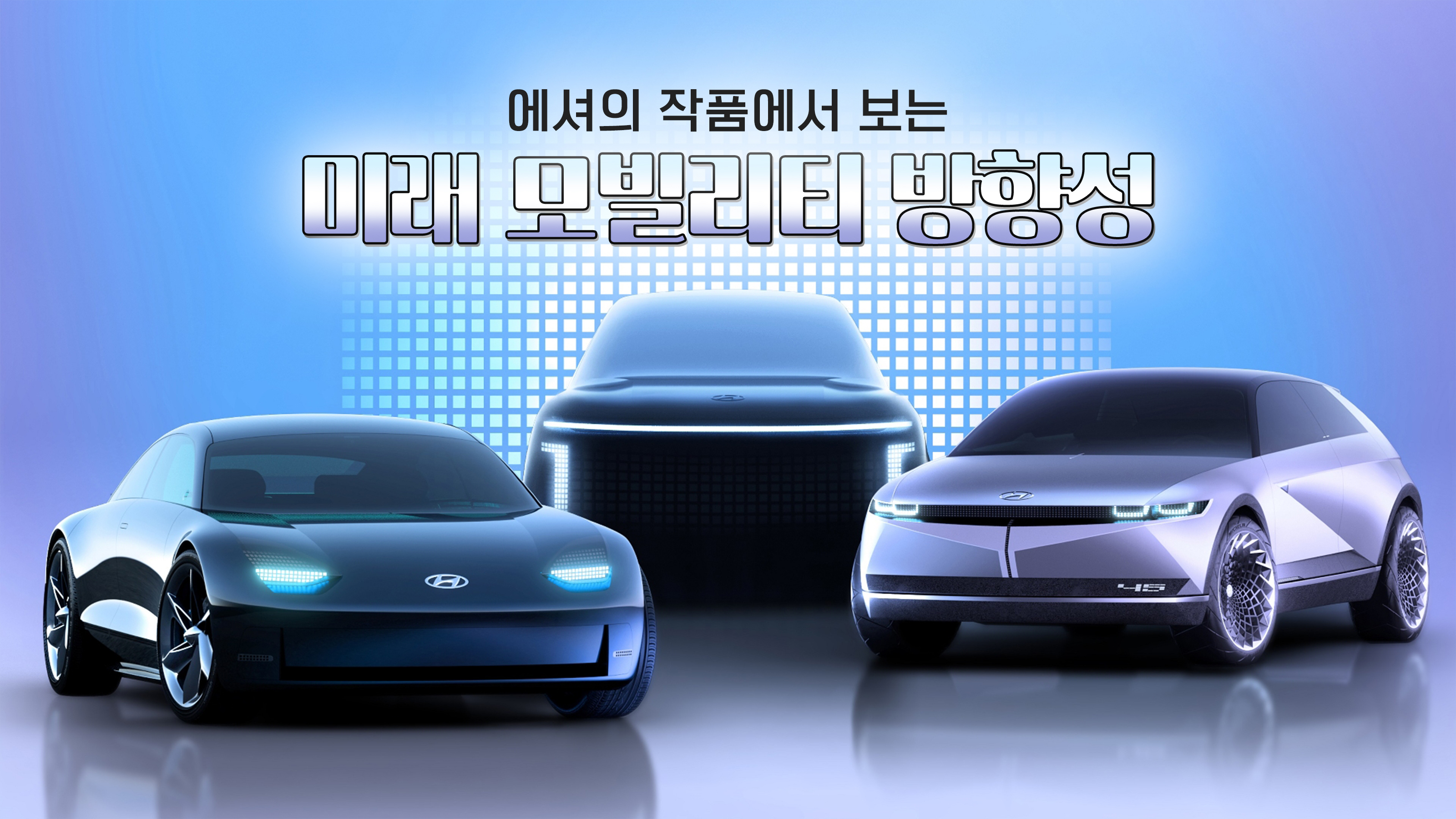 에셔가 작품의 한 조각 패턴의 반복, 변형, 전체와의 어우러짐을 고민했던 것처럼 모빌리티 관점에서는 수천 수만개의 작은 부품들이 모여 고객들의 니즈에 맞는 최적화된 자동차를 선보이고 있습니다.