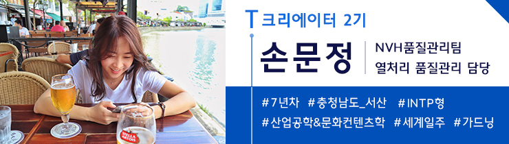 안녕하세요, 저는 현대트랜시스 NVH 품질관리팀에서 근무하고 있는 손문정 매니저입니다. 저는 근심과 걱정을 훌훌 털고 새로운 마음으로 리프레쉬하기 가장 좋은 방법은 여행이라고 생각하는데요.
