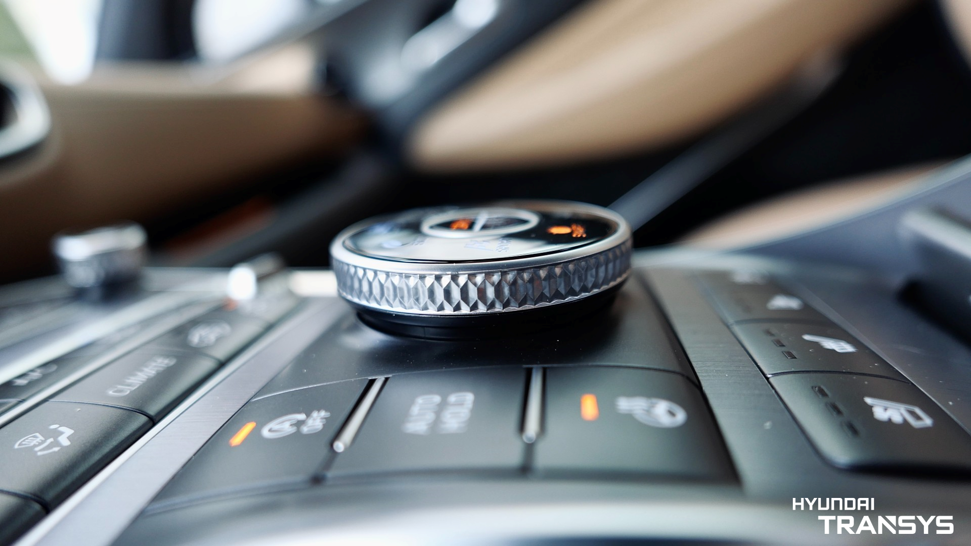 넥쏘를 기준으로 브랜드 내 중형 이상의 SUV 인테리어로 자리잡은 버튼형 전자식 변속기와 페이크 소재와 리얼 알루미늄을 믹스한 직관적인 아날로그 버튼 등은 브랜드 대표 SUV라는 타이틀에 걸맞게 고급스러운 디테일을 보여주고 있습니다.