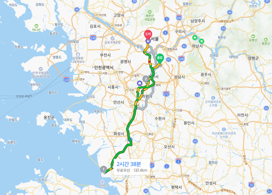 · 특이사항 : 주말 일부 교통 체증, 출·퇴근 정체 구간 통과, 오프로드 테스트 등