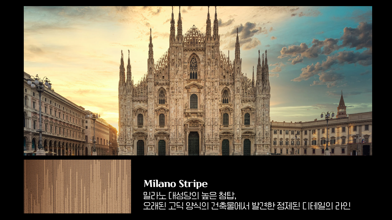 또한 서울 도심의 조명을 픽셀 그래픽으로, 밀라노 두오모 성당의 첨탑 스카이라인을 스트라이프 그래픽으로 디자인에 반영했습니다.