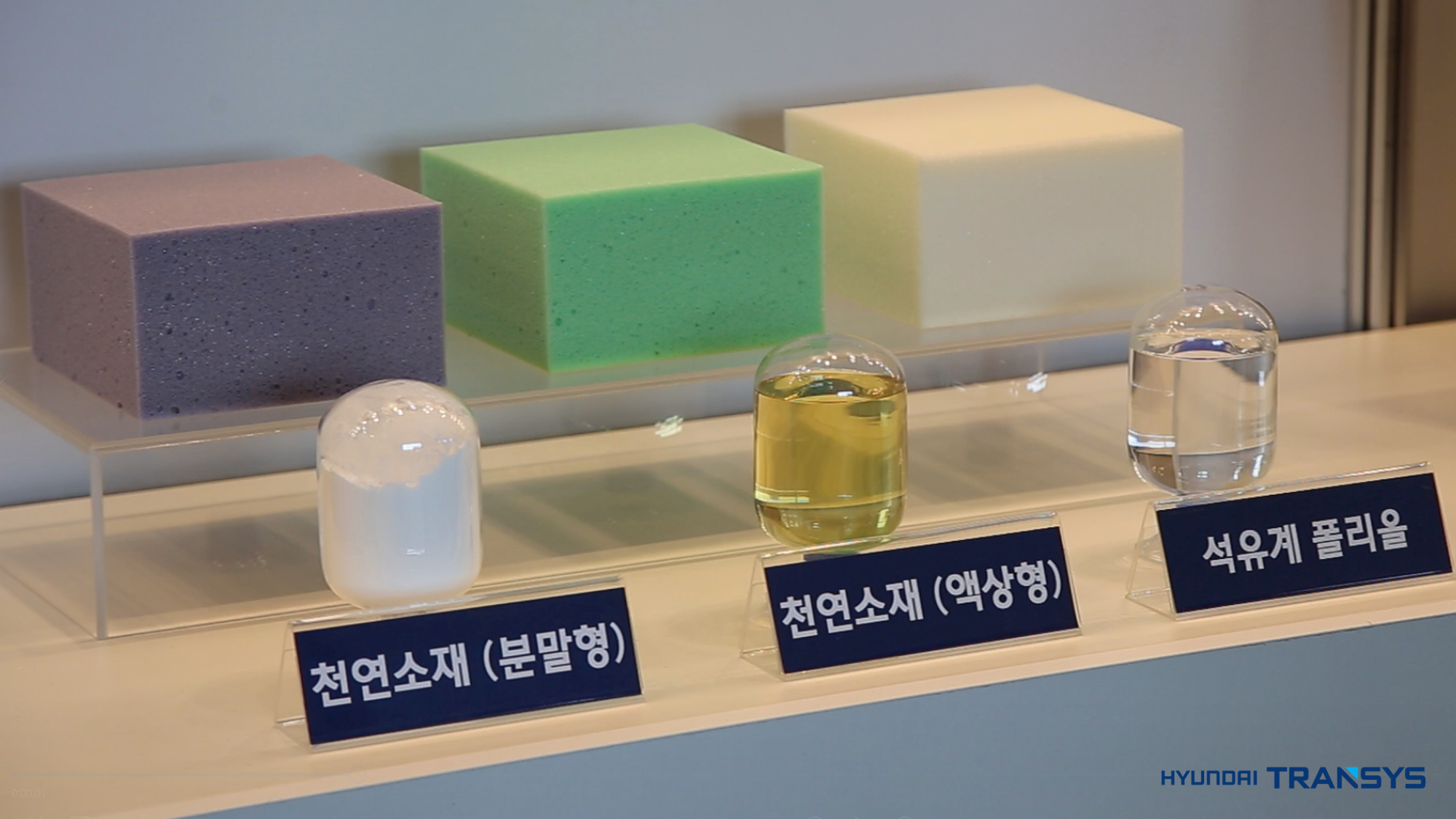 이외에도 화학 방오제가 아닌 표면에 미세 돌기를 만들어 때가 타지 않도록 하는 표면처리 기술, 피마자 씨, 녹말가루 같은 천연소재를 활용해 새차증후군을 유발하는 유해 물질(VOC)을 저감시킨 폼패드도 전시되었습니다.