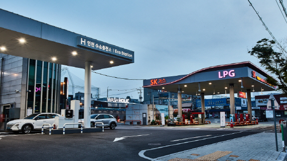 SK가스는 인천시 남동구에 기존의 LPG 충전소에 수소 충전 시설과 프리미엄 셀프 세차장, 편의점까지 갖춘 복합 충전소인 ‘에코 스테이션’ 1호점을 운영 중입니다. 에코 스테이션 1호점은 SK가스가 현대자동차와 함께 수소 충전 설비를 구축한 친환경 충전소인데요.