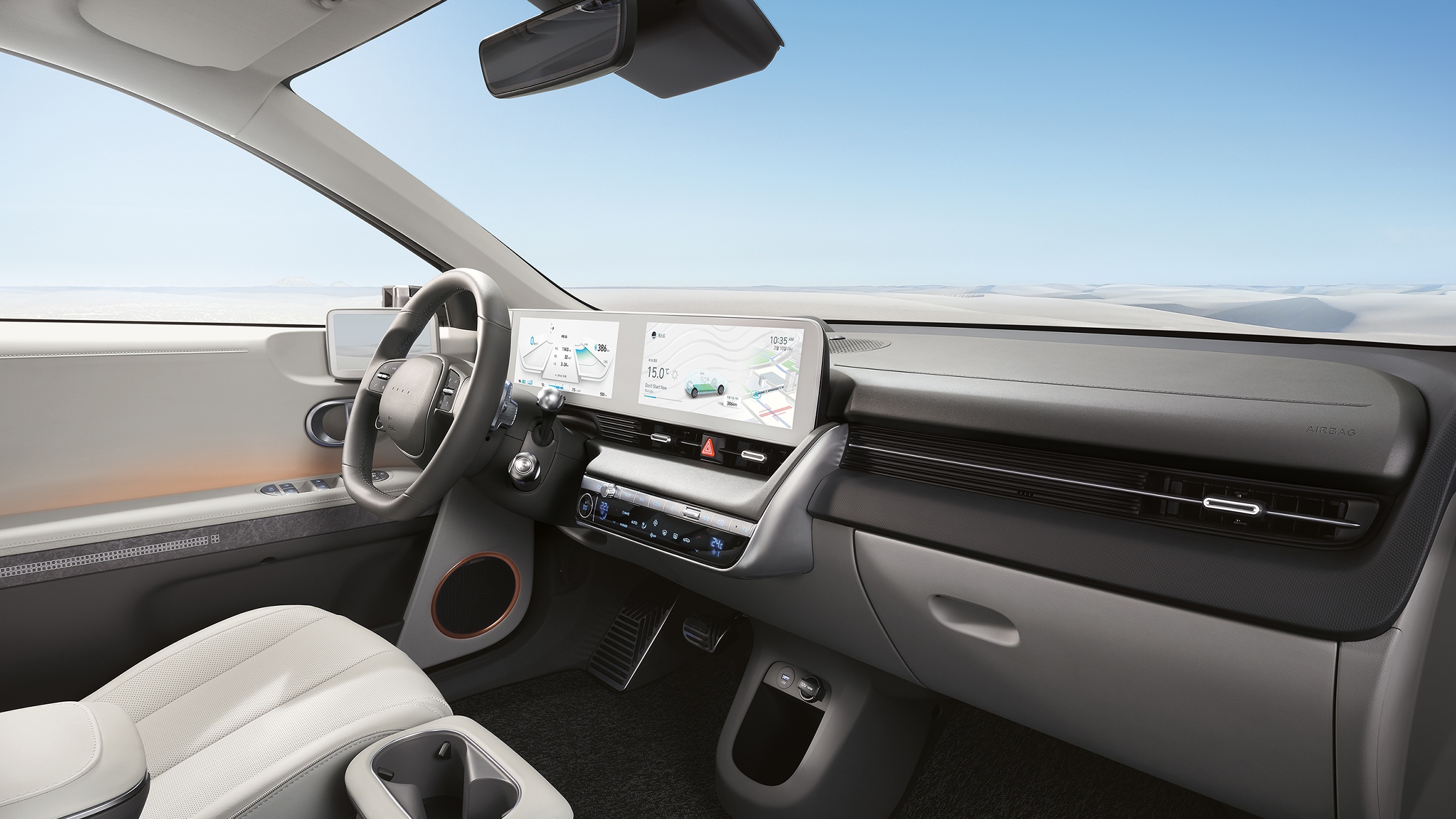 아이오닉 5는 대형 세단이나 SUV에 버금가는 3,000mm의 긴 휠베이스와 평평한 바닥면, 대시보드 안쪽에 위치한 부품의 일부를 차체 앞쪽으로 옮긴 덕분에 실내 공간을 넓게 사용할 수 있습니다.