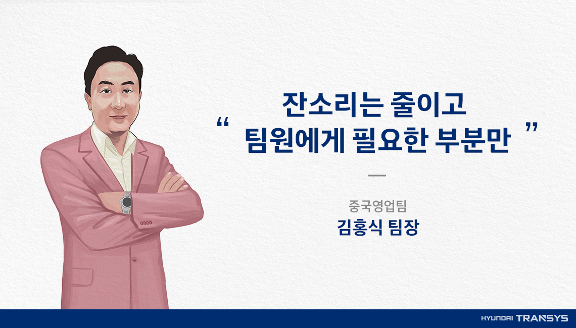 지금까지 각자의 경험과 강점을 바탕으로 팀을 이끌어가는 영업사업부 팀장님들의 이야기를 들어봤습니다. 같은 현대트랜시스 동료로서 팀장이라는 직책과 무게를 묵묵히 견뎌내며 애쓰시는 분들께, 다시 한번 감사 인사를 전합니다. 각자의 리더십으로 현대트랜시스를 이끌고 계시는 팀장 인터뷰는 쭉 이어집니다!