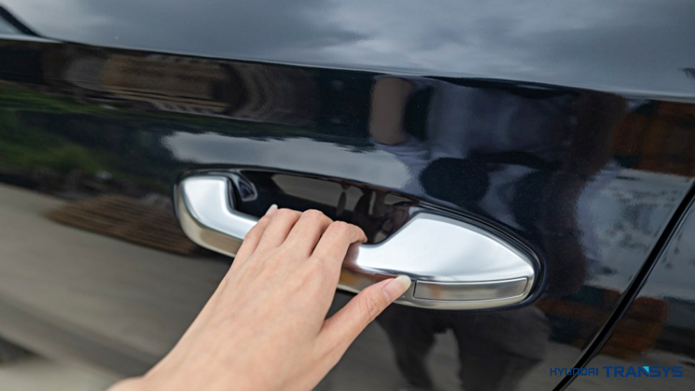 도어에서부터 달라진 부분이 보였는데요. 바로 손잡이가 터치로 열린다는 점! 엄지손가락을 살짝만 갖다 대도 바로 열려요.