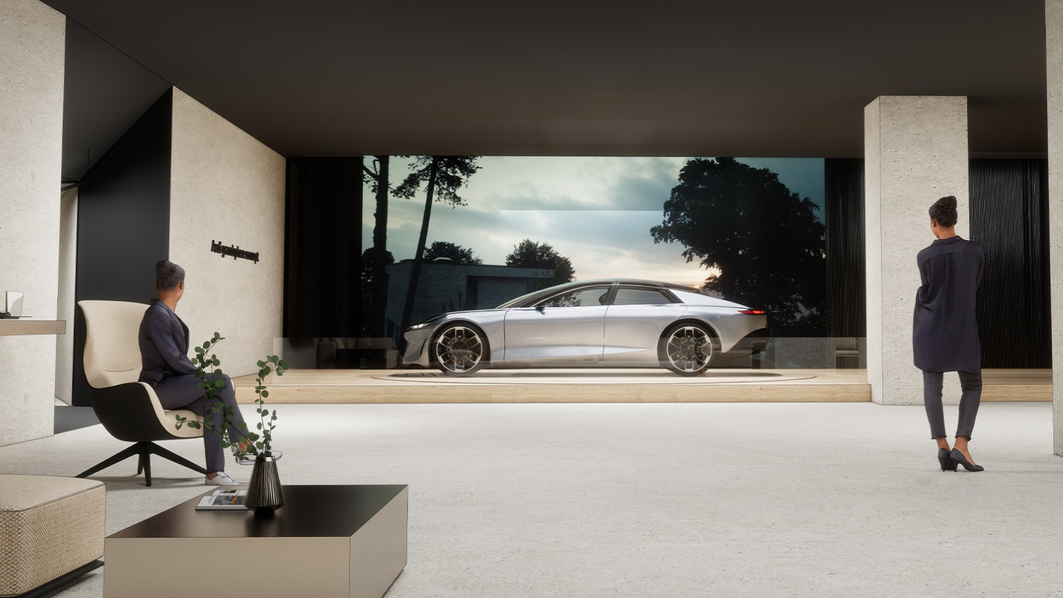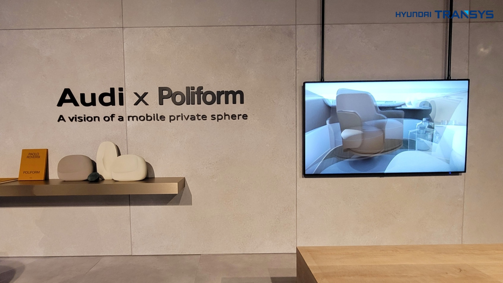 거주공간의 거실이 어떻게 이동공간으로 갈 것인지, 반대로 자동차의 실내공간의 DNA가 어떻게 거실로 확장될 수 있을지 확인할 수도 있었는데요. 앞서 살펴봤던 아우디의 전시장에서는 폴리폼이라는 가구 회사와 함께 거실 공간을 꾸미고, 그 거실 공간이 자동차 내부에까지 연결되는 모습을 보여줬습니다.