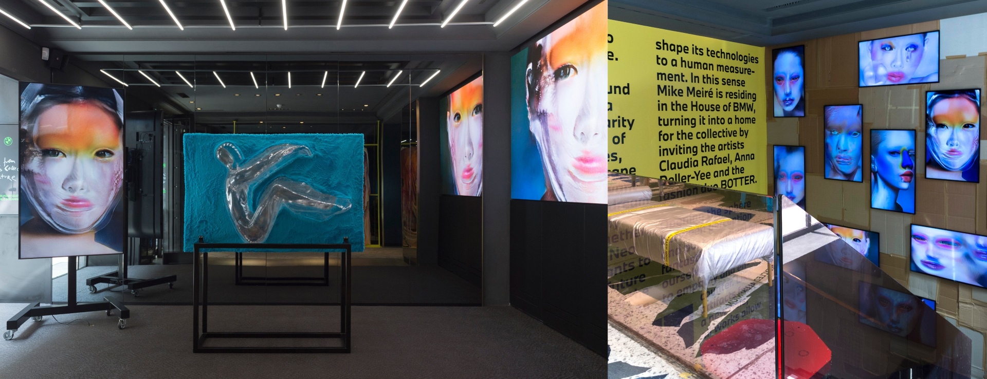 BMW는 Mike Meiré를 비롯해 3명의 혁신적인 아티스트와 함께 ‘연결/디지털라이즈/순환(connection/Digitalize/Circular)’에 대한 내용으로 전시로 꾸몄는데요. 방문자의 얼굴을 활용해 연결한 인터랙티브 아트, 순환이란 컨셉을 담아 3D 프린팅으로 실시간 쌓아 올리는 자동차 조형물, 친환경 재활용 소재에 대한 개념을 모티브 삼아 구성한 워크샵 공간 등 다양한 미술 작품을 선보였습니다.
