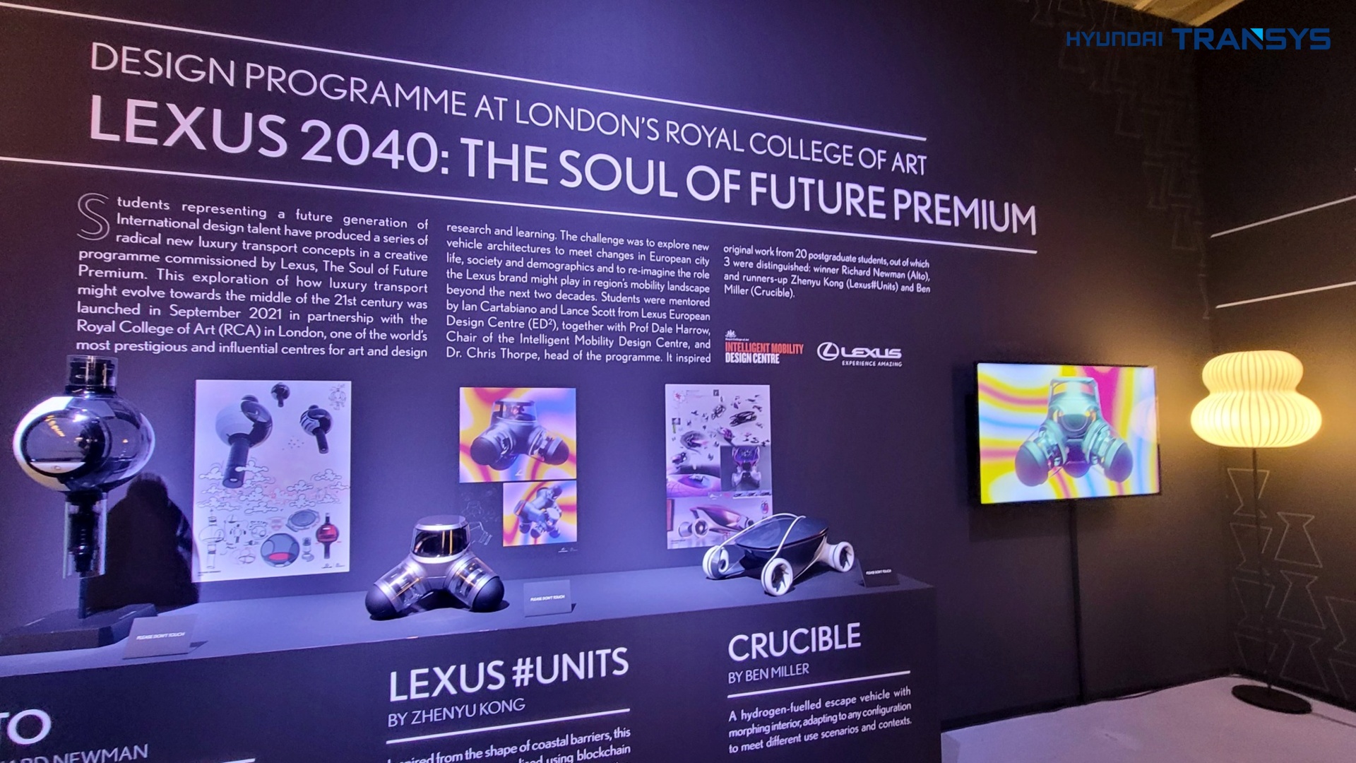‘2040: 렉서스와 런던 왕립미술대학 학생 파트너십’ 결과물인 ‘미래의 영혼 프리미엄’도 전시의 큰 부분을 차지하고 있는데요. 학생들의 재기발랄한 아이디어를 통해 20년 안에 교통이 어떻게 진화할지에 대한 주제를 탐구하고 그 결과물을 전시했습니다.