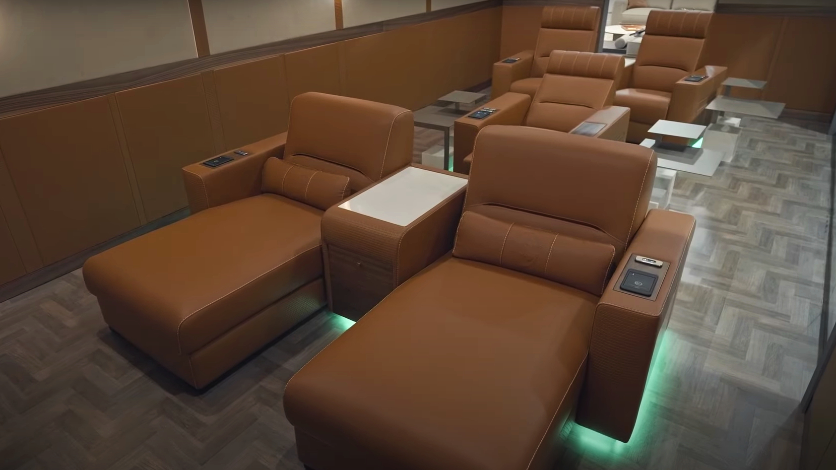 자동차 회사의 DNA를 가진 인테리어임을 알 수 있는 건 람보르기니와 애스턴마틴 홈씨네마용 안락의자였습니다. 어디서 많이 봤던 냉/온가능 컵홀더가 부착되어 있었는데, 카니발 하이리무진에서도 봤던 자동차용 컵홀더였죠. 이를 통해 자동차의 실내공간이 어떻게 집 안으로도 들어갈 수 있을지 생각해볼 수 있었던 시간입니다.