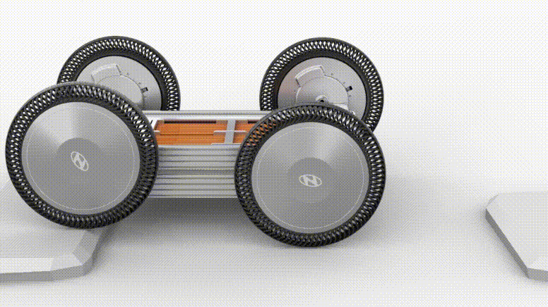 모베드는 납작한 차체에 네 개의 바퀴가 달려있는 형태로 상단에 어떤 장치를 탑재하느냐에 따라 배송 및 서빙, 안내 등 다양한 목적으로 활용할 수 있는데요. 네 바퀴가 독립적으로 움직여서 요철, 계단, 경사로 등 다양한 지면에서 이동이 가능하기 때문에 안내, 서빙 로봇의 활용 범위를 실외까지 확장할 수 있습니다.