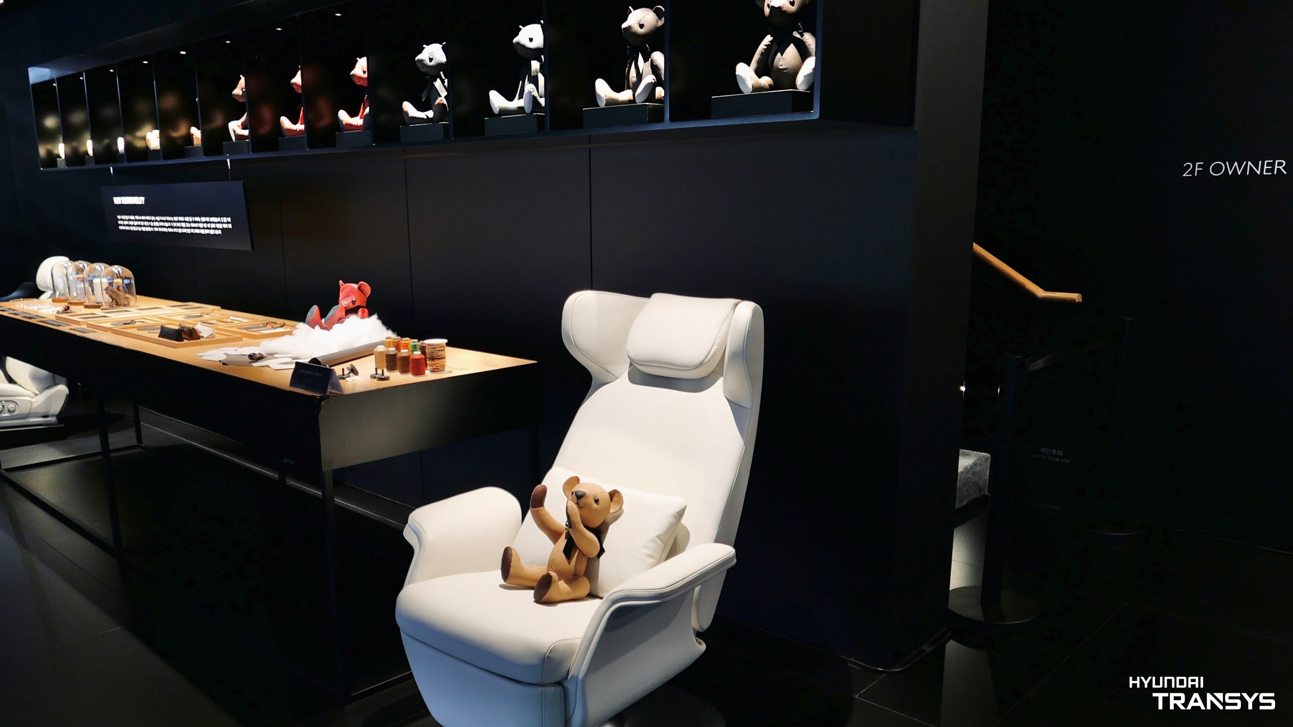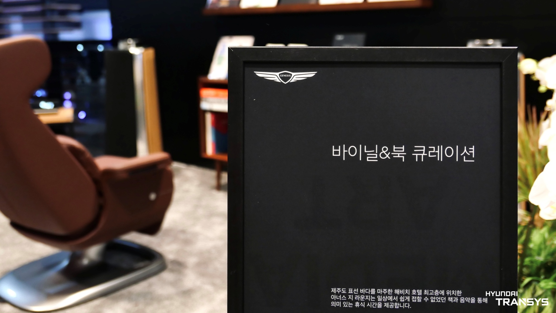 공간 한켠에 전시된 현대트랜시스의 제네시스 리클라이닝 의자를 통해서도 이러한 메시지는 자연스럽게 라이프스타일과도 연결되는 것 같습니다.