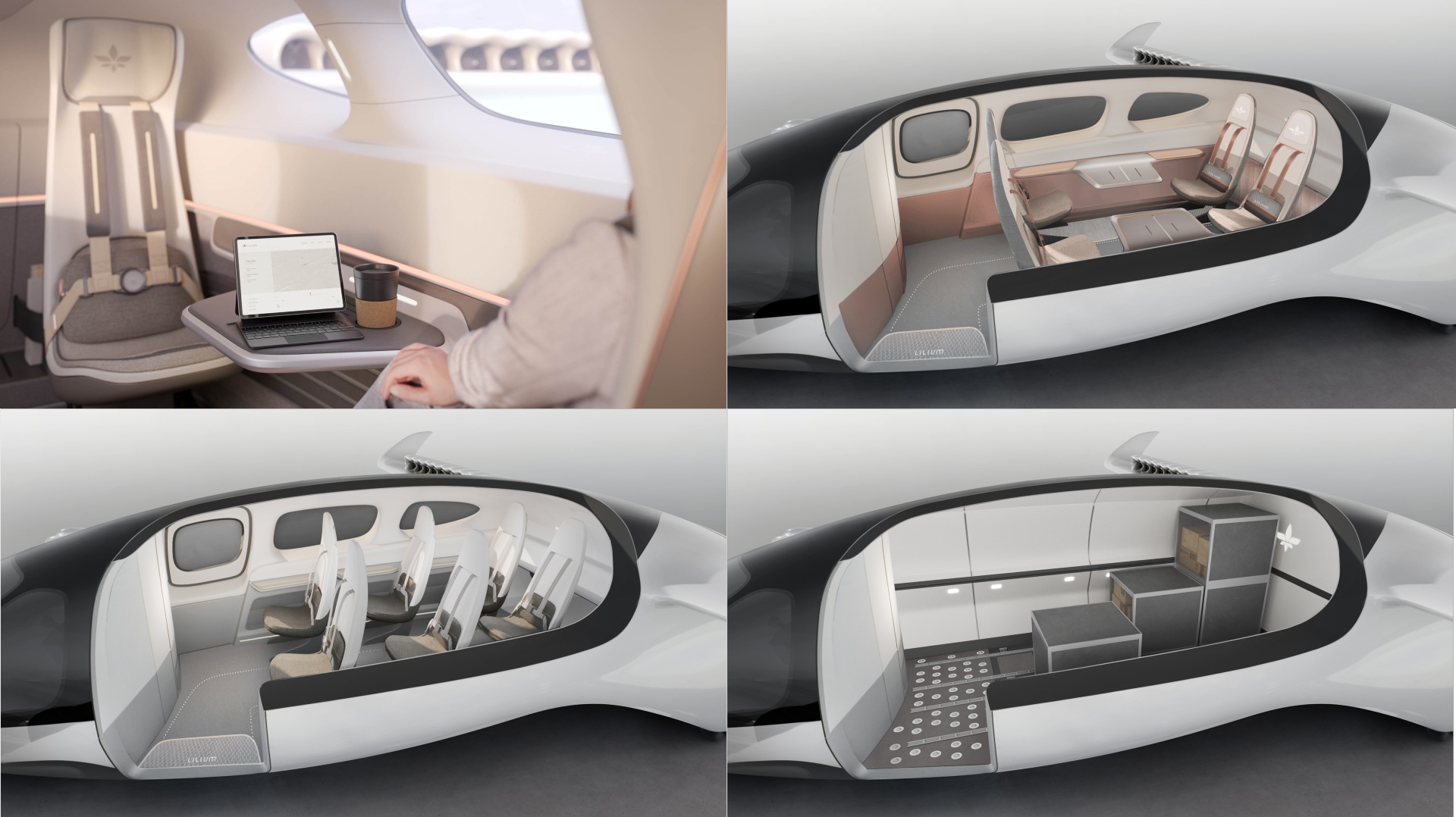 또한 내부 인테리어를 보여주는 모형을 전시하고 있었는데, 버티컬과 마찬가지로 마주보는 형태의 4인용 시트를 기본 구성으로 보여주고 있었습니다. 이 밖에도 홈페이지에 들어가보면 6인용 모드, 카고 모드 등 다양한 모드로도 객실이 변형될 수 있음을 강조하고 있습니다. 버티컬과 마찬가지로 조종석과 객실 공간이 분리되어 있으며, 원하는 시트 배치 솔루션에 따라 선택이 가능하도록 구성되어 있었습니다. 특히 일반 항공기 시트처럼 슬림한 형태의 시트라는 점이 눈에 띄네요.