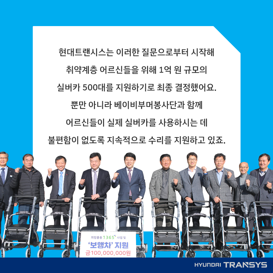 이 세상 모든 연령대의 이동권을 위한 현대트랜시스의 좋은 일은 앞으로도 계속됩니다.