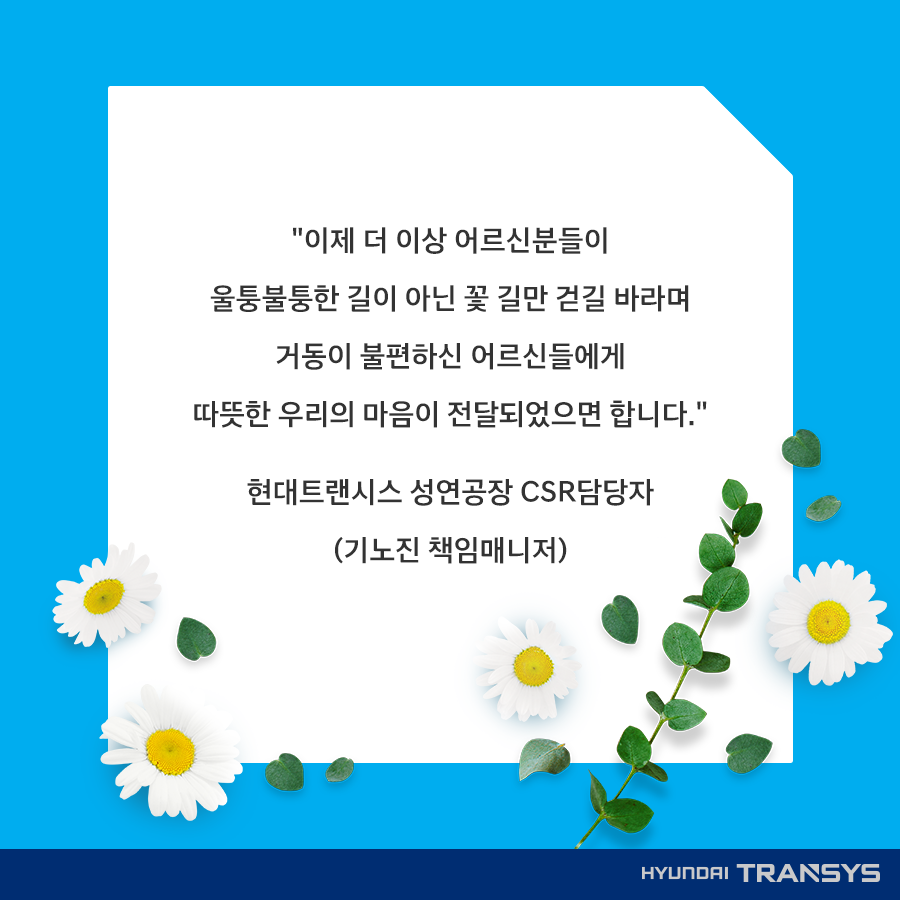 이번 현대트랜시스의 CSR 활동은 어르신들에게 큰 호응을 얻었죠.