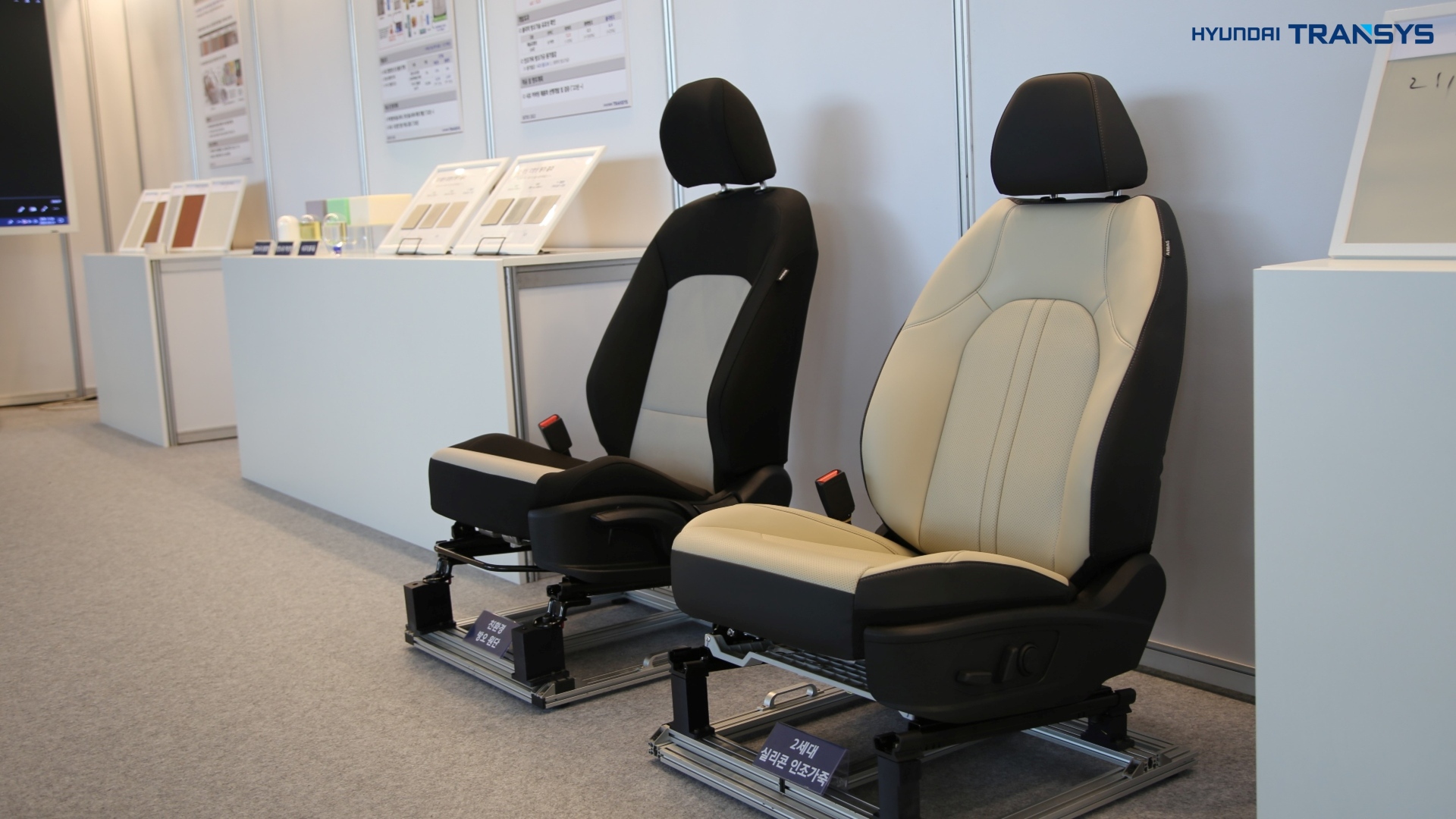 폐가죽을 활용한 재생 가죽 원단, 자투리 가죽을 엮어 만든 위빙 기법 등 자원 낭비를 최소화한 친환경 소재와 가공 기법들로 현대트랜시스의 지속가능한 디자인 철학과 미래 기술 방향성을 전달했습니다.