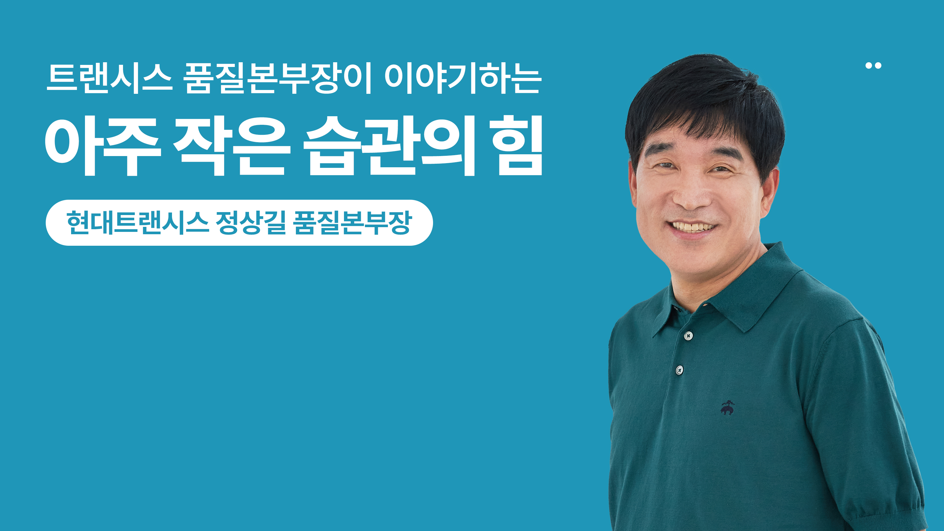 현대트랜시스는 ‘리더의 문화 다락방’ 코너를 통해 임원분들의 인생에 새로운 모멘텀을 마련해준 문화 콘텐츠를 소개하고 있습니다. 아주 작은 습관이 내가 원하는 변화를 이끌어내는 가장 강력한 힘이라는 것을 알면서도 실천하기가 쉽지 않은데요. 오늘은 정상길 품질본부장님이 선택한 도서 ‘아주 작은 습관의 힘’과 실생활에서 실천하고 계신 행동의 습관화에 대해 이야기를 나눠볼까요?