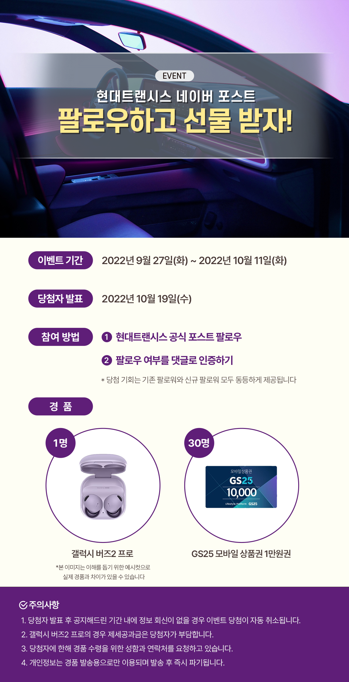 2. 이벤트 당첨자는 2022년 10월 19일(수) 공식 포스트를 통해 발표 예정