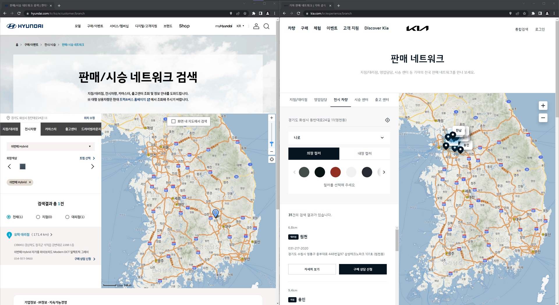 차종을 결정했으니 전시차가 어디에 있는지 확인해 봐야겠죠? 현대자동차, 기아 홈페이지에 방문하시면 전시 차량의 트림, 색상, 옵션 등을 확인해 볼 수 있습니다.