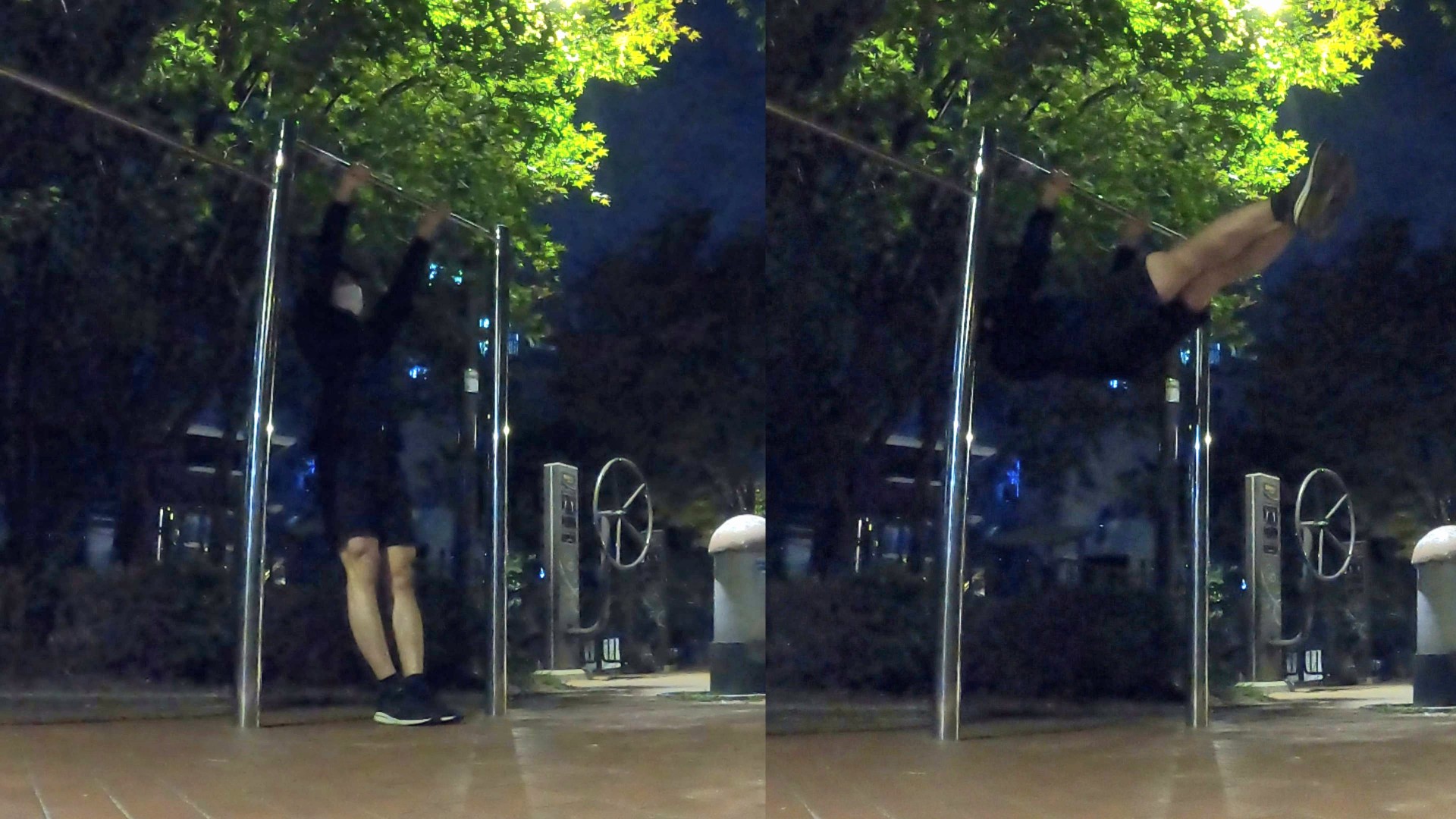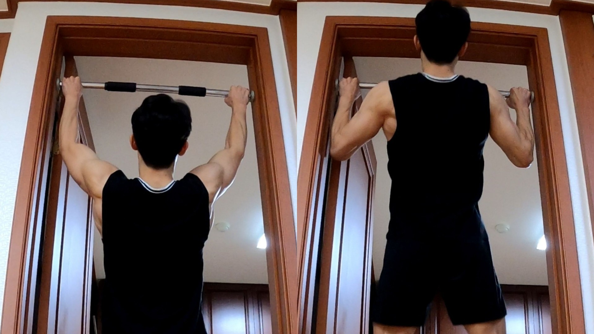● 팁: 손목을 손바닥 쪽으로 구부린 채로 철봉을 잡고 수행하면 보다 안정적으로 수행 가능합니다.