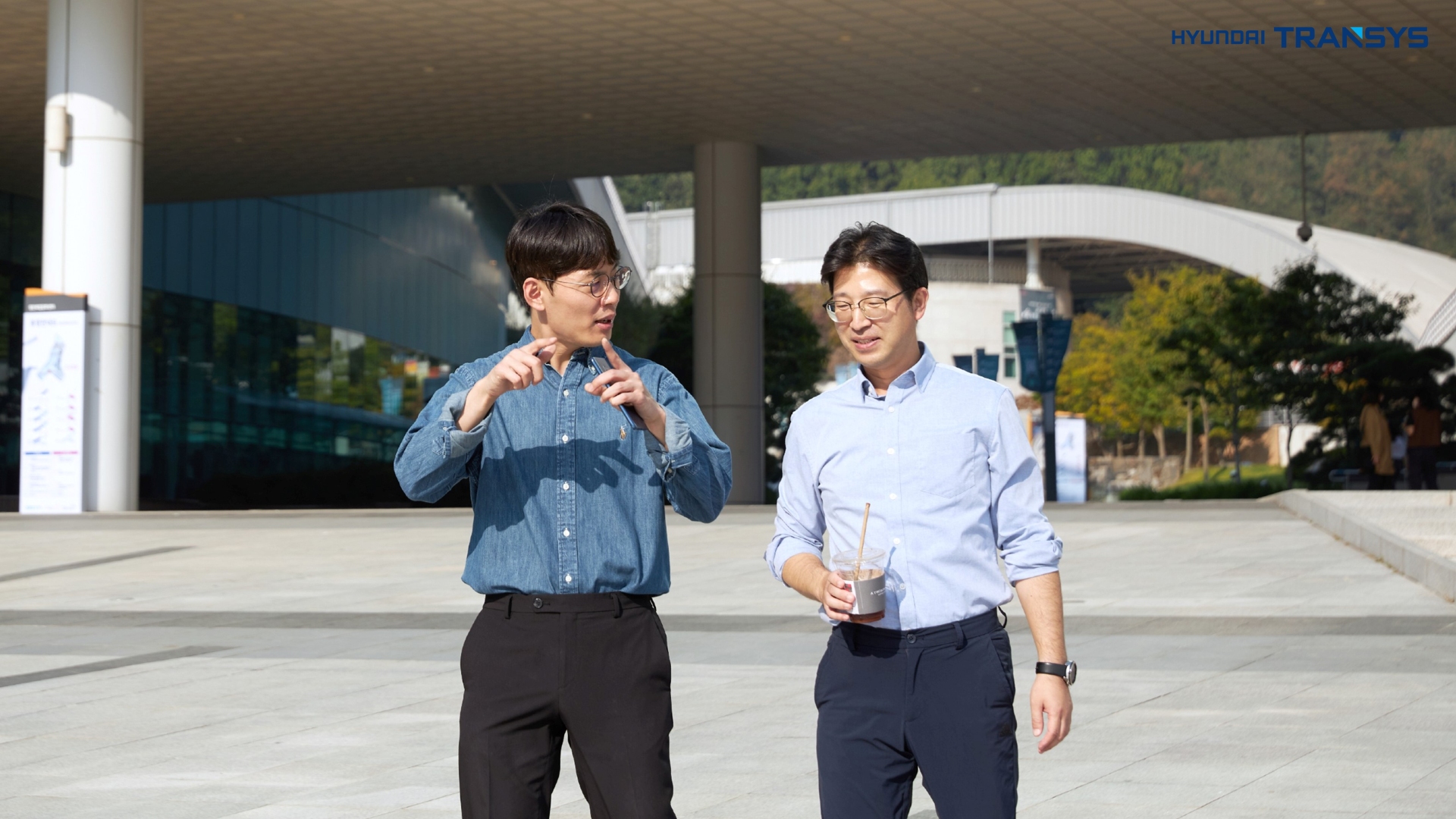 현대트랜시스는 직급 타이틀에서 벗어나 직원들과 편안하게 담소를 나누는 ‘퇴근길 상담소’를 운영하고 있습니다. 오늘은 다섯 번째 시리즈로 현대트랜시스의 든든한 대들보이자 그 누구보다 성실한 세무팀의 김범석 팀장님과 박준성 매니저의 퇴근길을 따라가보았습니다.