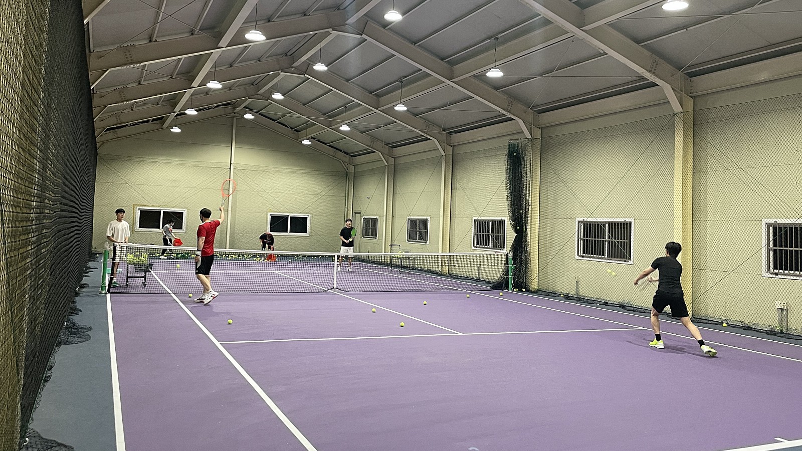 실내 레슨은 날씨에 영향을 받지 않는 다는 것이 장점인데요. 특히 자세 교정에 가장 좋은 곳이라고 생각합니다. 다만 공간 이동의 한계로 마음껏 움직이면서 배우는 데에는 어려움이 따르곤 합니다. 따라서 실내 레슨은 기본 자세를 배우고, 테니스에 대한 흥미를 높여주는 것이 중요한 1~3개월차에게 추천합니다.