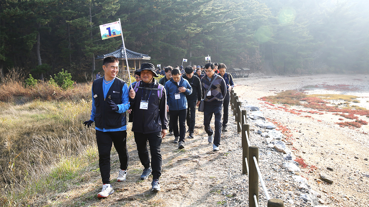 해안선을 따라 나지막한 산등성이를 걷다 보니, 시원한 바람과 가로림의 절경에 취해 힘든 줄 모르고 걷게 되었는데요. 아늑하고 포근함이 느껴지는 아름다운 자연을 벗 삼아 임직원들과 오랜만에 소통과 화합의 시간을 갖는 자리였습니다.