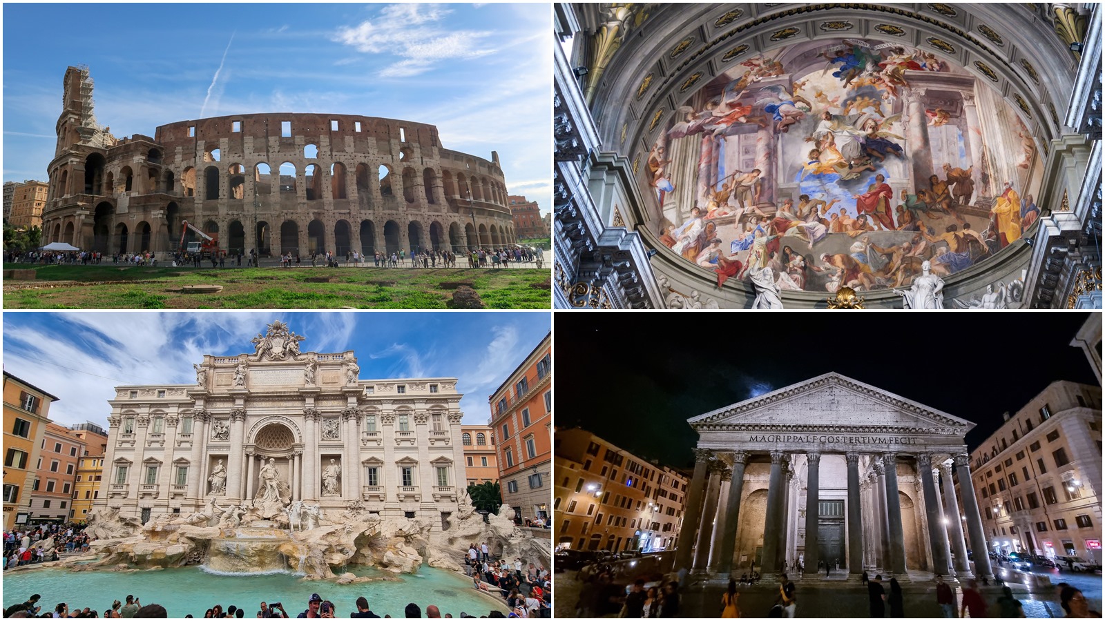 거대함과 정교함을 동시에 갖고 있던 콜로세움, 현재의 기술로도 건축하기가 어렵다는 판테온, 평면인 천장을 벽화로 돔처럼 보이게 만든 성 이냐시오 성당 등 로마는 계속 감탄을 내지를 수밖에 없게 하는 도시였죠.