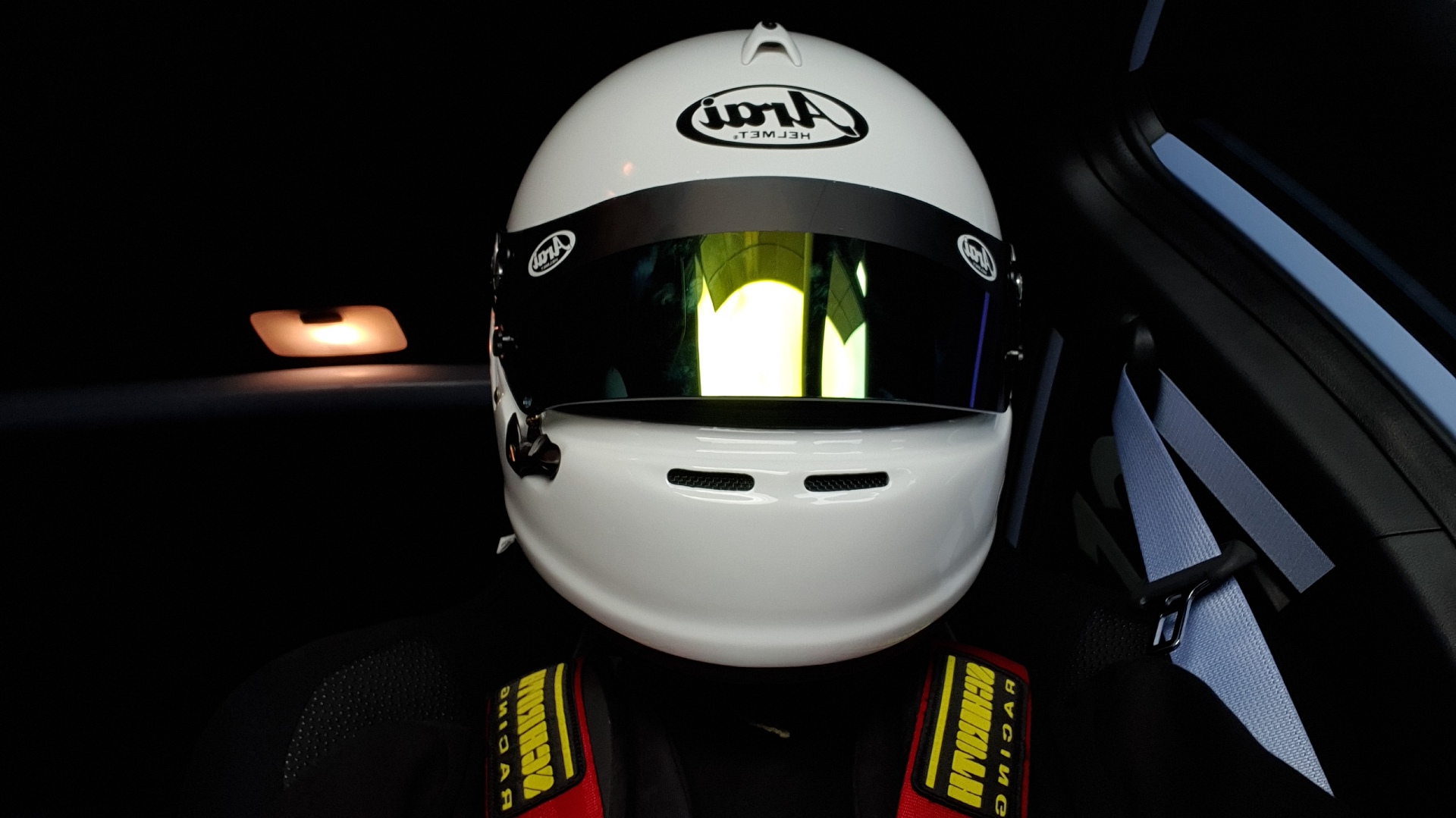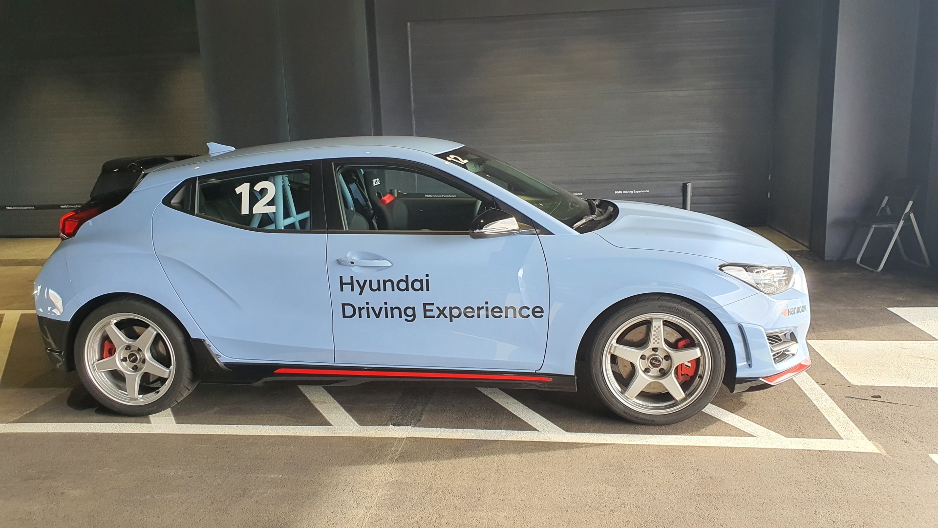 제가 탑승한 벨로스터N은 경량화를 위해 2열 시트가 제거되었고, 1열 시트는 레이싱용 버킷시트로 교체되어 6점식 안전벨트가 적용되어 있었습니다. 아마 눈으로 확인할 수 없는 샤시나 엔진 쪽에도 차이가 있지 않을까 싶습니다. 레이스 택시는 260km/h까지도 속력을 올리기 때문에 헬멧, 목 보호대 등의 안전장비를 모두 갖추고 탑승했습니다.