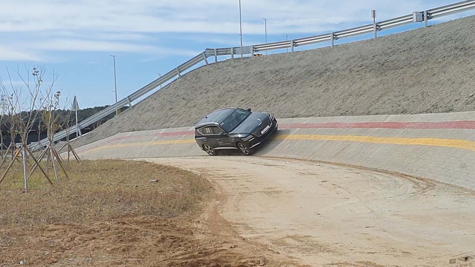 중간에 잠시 내려 인스트럭터 차량에 탑승했는데요. 아래로 꺼진 도로를 S자로 통과하는데, 옆으로 보니 도로가 창문 바로 앞에 붙어 있는 느낌이 들었습니다. 평소 운전 할 때 느껴보지 못한 경험이라 정말 짜릿하고 아찔했습니다.