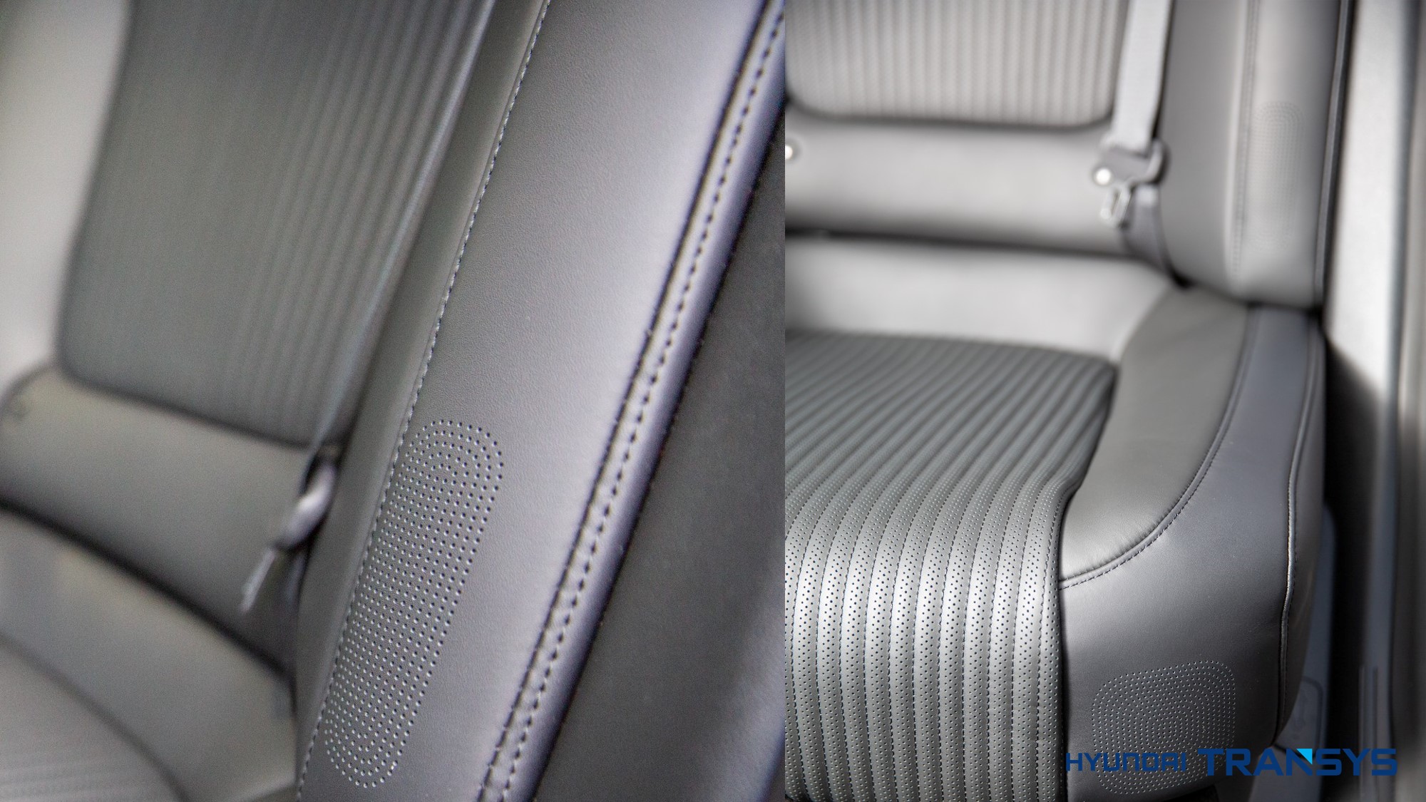 또한 헤드레스트 디자인도 새롭게 바뀌었는데요. 1세대 그랜저를 오마주한 스티어링 휠 디자인이 헤드레스트에도 들어가 향수를 자극하고, 동시에 모노포스트 지지대로 지지력도 향상시켰습니다.