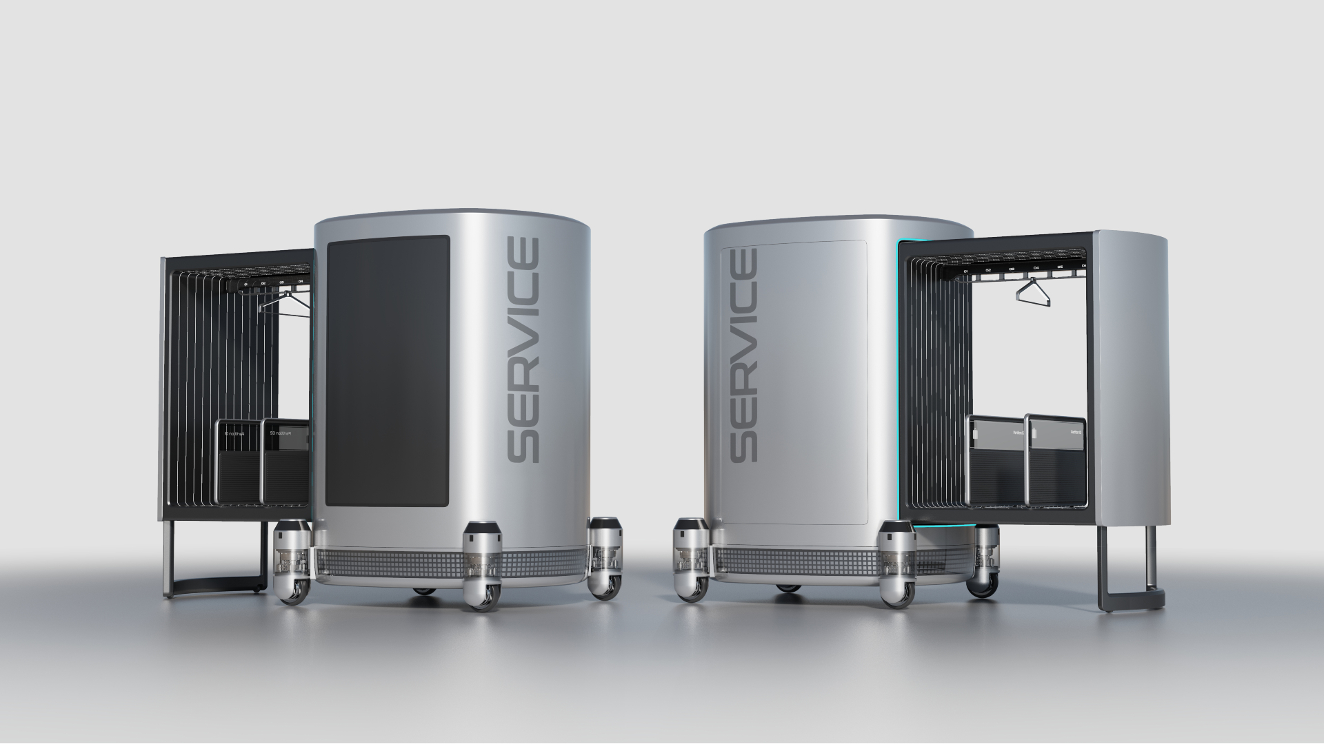 ‘서비스 모빌리티’는 천장에는 옷걸이, 바닥에는 세로 칸막이가 달려있어 호텔 등에서 짐을 효율적으로 운반할 수 있는데요. 사람 한 명이 앉을 수 있는 너비 140cm, 길이 190cm, 높이 70cm 사이즈로 퍼스널 모빌리티처럼 조이스틱을 통해 조작할 수 있습니다.