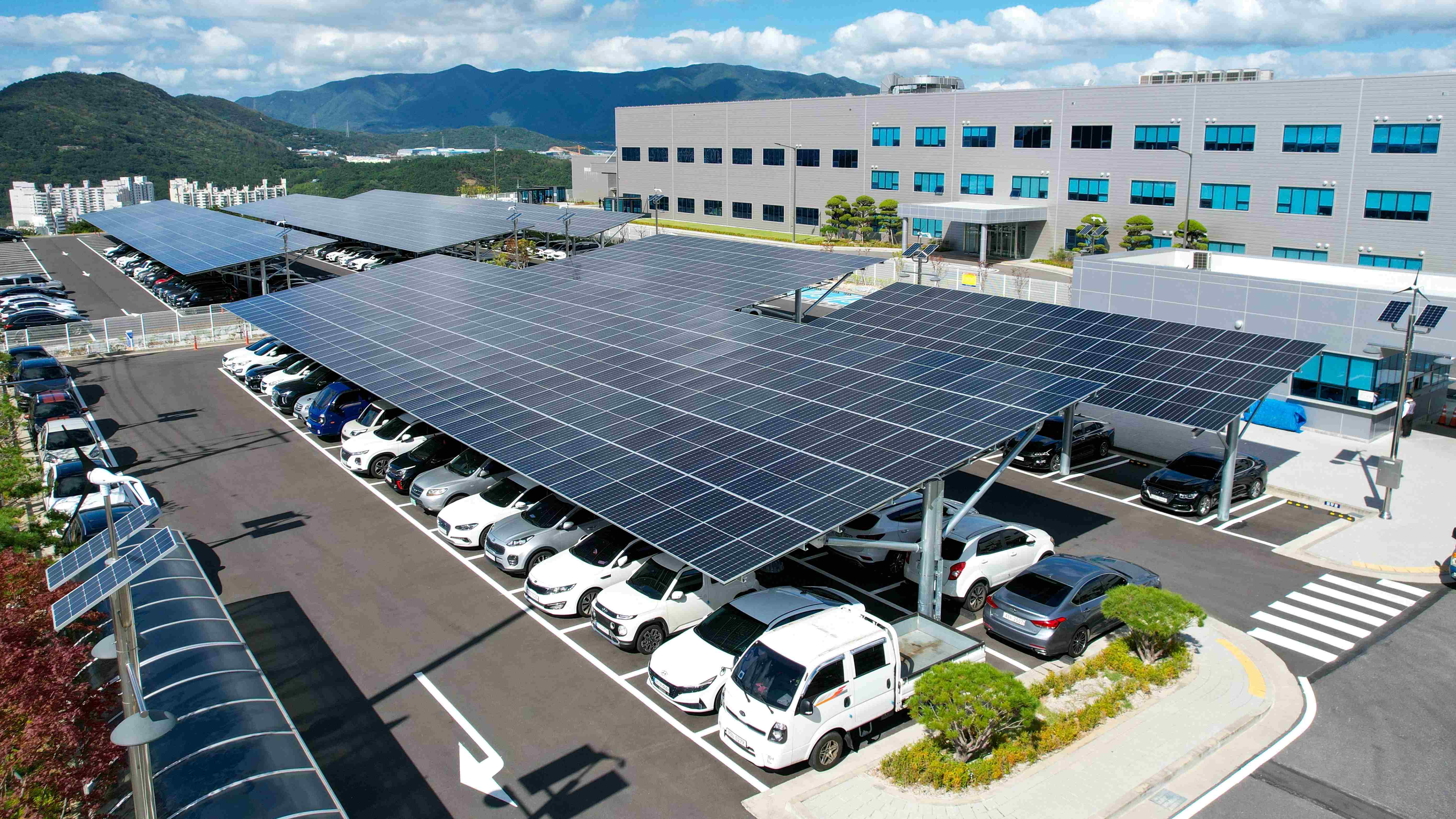 현대모비스는 국내 주요 생산거점의 주차장 부지를 활용해 친환경 재생 에너지를 생산하는 태양광 발전설비를 구축해 나가고 있습니다. 구조물 설치 면적은 축구장 1.5배 크기인 약 1만1894㎡이며, 총 설비 용량은 2.5MWp 규모로 연간 3308MWh의 재생에너지 생산이 가능한 것이 특징입니다.