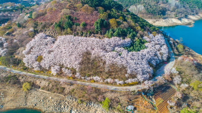 살랑살랑 흔들리는 벚꽃을 천천히 드라이브하면서 감상하고 싶다면 충청북도 제천시에 위치해 있는 청풍호를 추천합니다. 청풍호는 산과 호수가 어우러져 최고의 풍경을 선사하는 명소로, 그 규모가 매우 커 ‘내륙의 바다’라고 불리기도 합니다.