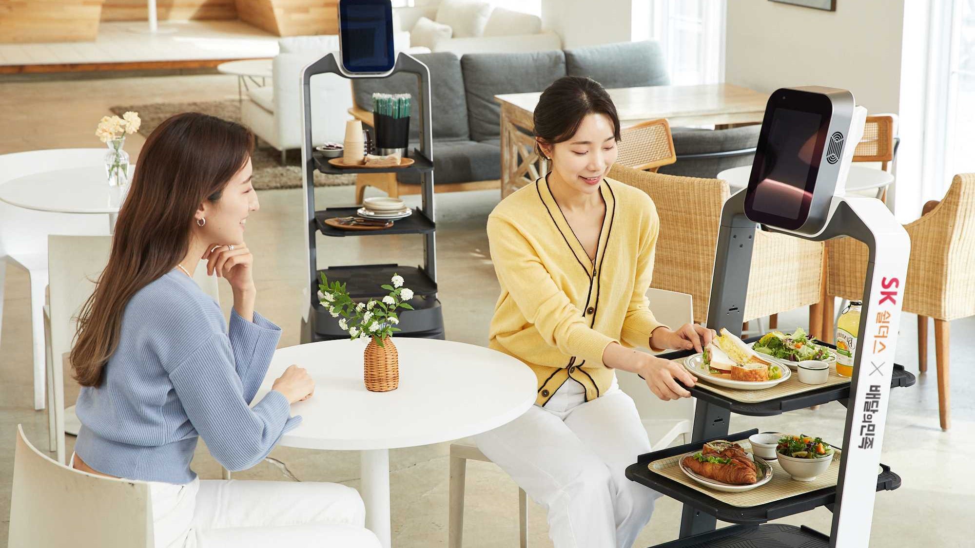 국내에서는 우아한형제들의 서빙 로봇을 예로 들 수 있습니다. 우아한형제들의 서빙 로봇 사업 독립 법인인 비로보틱스는 외식업 자영업자를 대상으로 월 구독형으로 일정 금액을 받고 서빙 로봇을 대여해 줍니다. 전국 1,000여 개 외식업체에서 이용하고 있으며 메뉴 추천, 테이블 안내, 음식 서빙 등이 가능합니다.