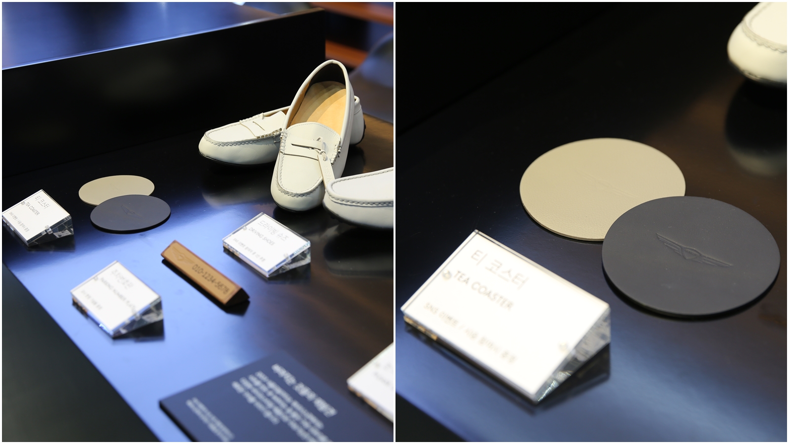 특히 제네시스관에서는 시트를 만든 후 버려진 가죽 자투리를 활용한 구두와 컵 코스터 등도 만나볼 수 있었습니다.